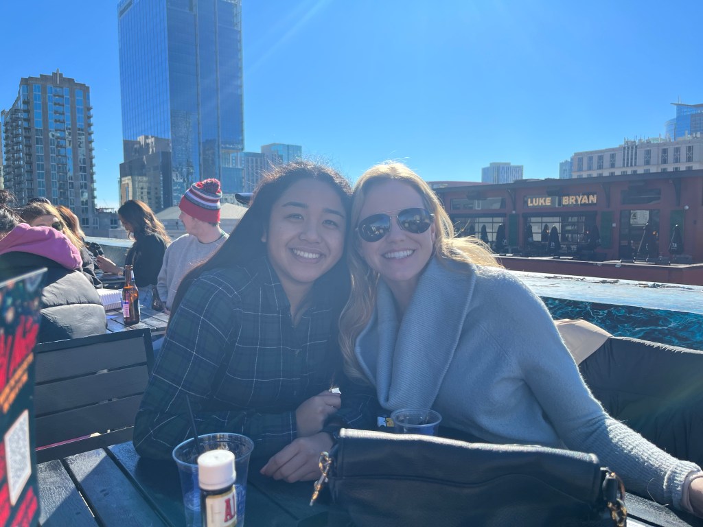 The minute I got off the plane this past weekend, it was 7 in the morning and AK asked if it’s cool we go to daily Mass at 8. I was not expecting that, but here I was fresh off the plane in joggers and a sweater about to walk into church. Then we walked 2.5 miles around the McCabe Golf Course. It doesn’t end there. I joined her and her friends and played frisbee, which by the way, don’t underestimate the game I’m exhausted and so sore from all the sprinting. It’s literally like football without the tackling. The Jamie 4 years ago would have cried and pouted her way out of all these things. I mean who goes to Nashville to play sports, board games, and go to church? Let’s not forget about how I was playing pickle ball and drinking mocktails at Kid’s Rock on Broadway just hours before my flight home. I knew whatever joy or fuel I have been longing for, this was it. This all goes back to my appreciation for how AK pushes me out of my comfort zone. I don’t even think she knows how she does this because she’s a natural leader and looks after everyone’s wellbeing. The last time I visited her in 2020, she had also made us run 2.5 miles around the same golf course. My dear friends, don’t be friends with athletes if you’re not prepared for the bonus hang out activities. AK is not the first who’s made me workout on a vacation.