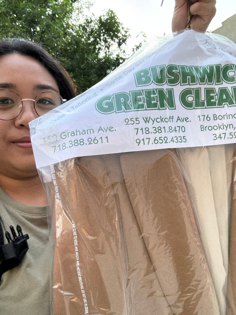 The manager and I met, and I was ecstatic. Photo of me coming back from the dry cleaners for your amusement.
